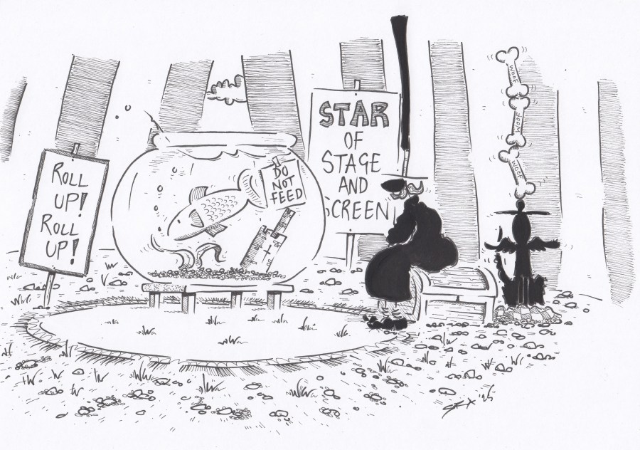 Well, this is just terrible! The circus are billing this as their top act. They’re claiming that the fish is a star of stage and screen but it’s rubbish! Reg’s woof biscuit balancing is far better and he doesn’t charge anything. Good boy, Reg!